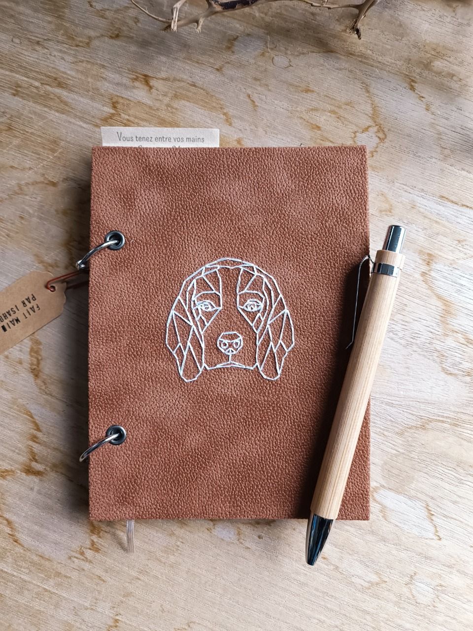 Carnet de notes / Agenda rechargeable " Le Chien" en simili cuir - Fait Main